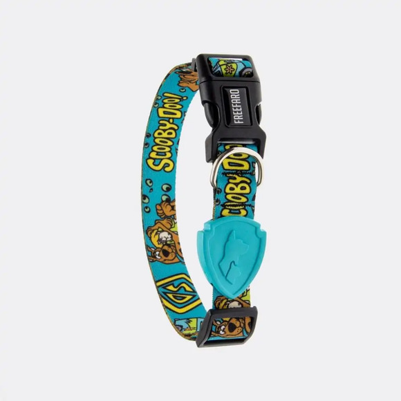 A estampa Scooby-Doo é um clássico da Warner Bros.Inspirada em um dos desenhos mais famosos da história, ela trás uma referência direta e carinhosa aos fãs da franquia americana, carrega o azul em seu tom principal com a narrativa de mistério e suspense, agregando o amarelo e marrom também. O verso sempre apresentado em uma incrível textura com as faces e pintas mais divertidas do Scooby.A Coleira FreeFaro é ajustável, se encaixa perfeitamente ao pescoço do seu pet e, caso queira adicionar ao pedido, a Tag de Identificação opcional, garante segurança extra em situações adversas.Produto original e licenciado pelos estúdios Warner Bros.Tag de identificação opcional.Não oferecemos o serviço de gravação na tag.Tira em Poliéster super macio e resistente é a mesma utilizada em cintos de segurança.Tecnologia inTransfer® garante a estampa com cores mais vivas.100% ajustável ao corpo do animal (verifique a tabela e tamanhos).Fecho resistente com engate rápido e 4 pontos de segurança.Medidas aproximadasMedidaPescoçoPP20cm até 28cmP28cm até 40cmM33cm até 50cmG45cm até 75cmLargura da FitaPP: 1cmP: 1,5cmM: 2cmG:2,5cm